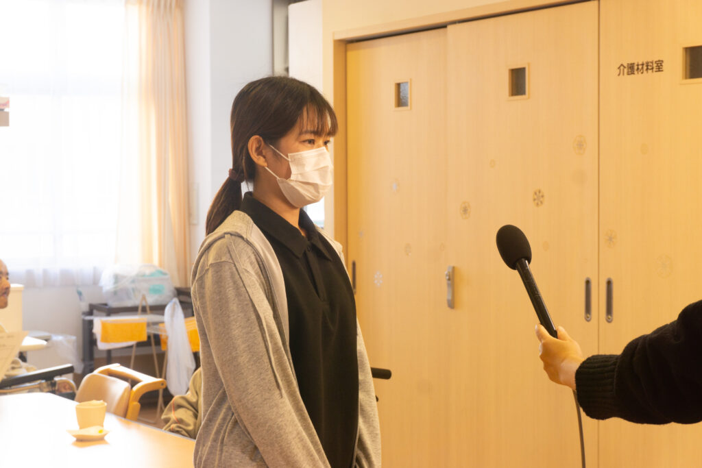 インタビューを受けた特定技能生は、ミャンマー出身で、飛鳥の里で働き始めて3年目になります!
