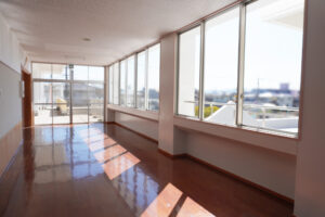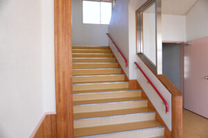 廊下や階段には大きな窓があり、日差しが差し込む明るい園舎となっています