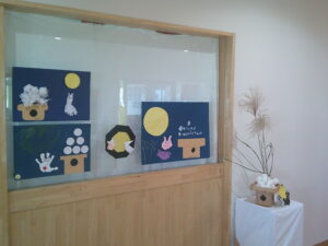 本日、保育園でも、お月見会をして、子どもたちの作品やお団子・ススキをみて秋を感じることができました。
