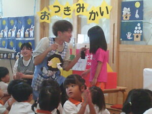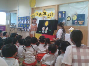 昨日は、中秋の名月でしたね。家庭で月を見て、お月見をしたお友達もいました。