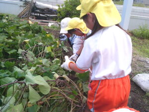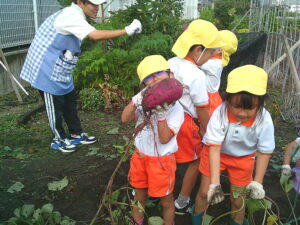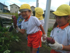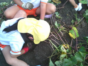 今日は、マスカット組さんは、さつまいもの収穫をしました🍠