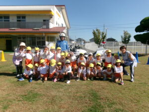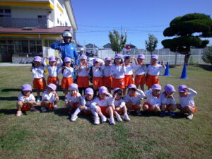 みかん・メロン・マスカット組は、交通政策課のめぐちゃんとあっちゃんに、横断歩道の渡り方を教えてもらったり、実際の横断歩道を渡ったり、また、白バイ見学もしました🏍
