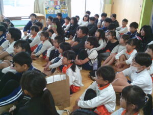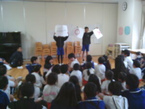 5年生が司会進行をしてくれました。クイズや新聞島ゲームを楽しみましたよ(o^―^o)ニコ