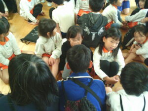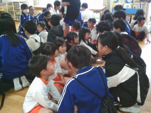 ピア・サポートの活動で、総社小学校の5年生の生徒さんが来園し、マスカット組の子ども達とペアになり楽しく過ごしました。