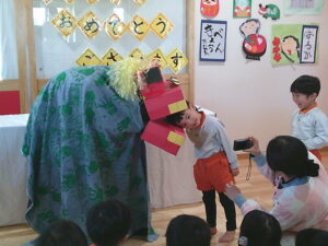 会の後は、みかん・メロン・マスカット組の子ども達は、お正月遊びを楽しみました。