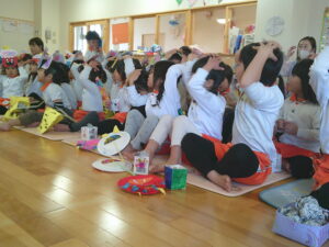 最後は、みんなで「鬼のパンツ」を踊って楽しみました。