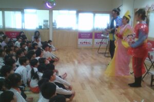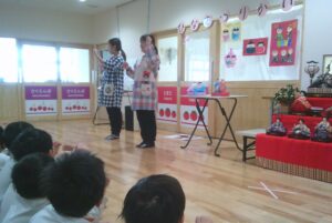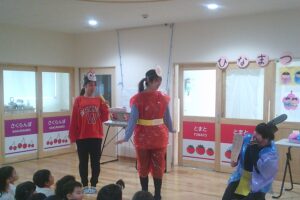 また、お雛様やお内裏様、アンパンマンやミミちゃんなどに先生たちが変身し、楽しい劇をしてくれました。