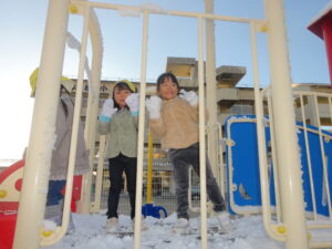 雪の感触を楽しむことはもちろん、固めて雪だるまを作ったり、雪合戦をして走り回ったり様々な気づきや体験ができました。 子どもたちへのプレゼント、次はもう少し多めに届くといいな。 (…と思いながら 通勤に支障がない程度に… とこっそり願ってもいます。)
