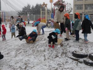 何度もニュースで「〇日から寒波が…」と聞きますが、子どもたちは、雪が少しでも降れば「あ!ゆき!」「そと いこう!」と元気に遊んでいます。
