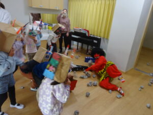 「おには~そと!!」 みんなで協力して鬼を退治することができました!!