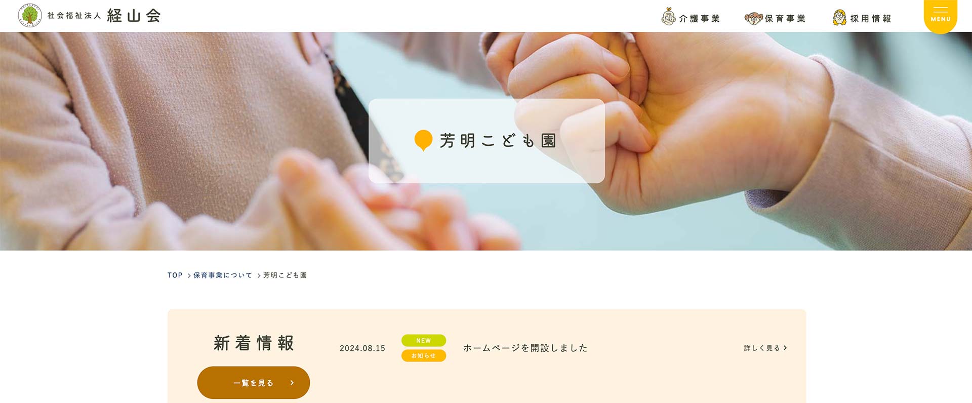 この度、社会福祉法人 経山会・芳明こども園のホームページを開設いたしました。