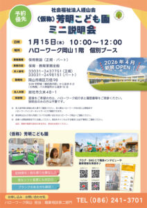 【お申し込み・お問い合わせ】ハローワーク岡山 職業相談第二部門 (086)-241-3701