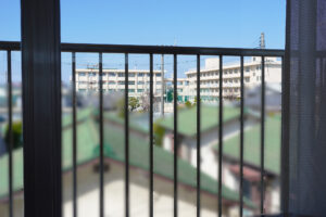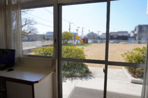 ▲年長クラスのマスカット組さんのお部屋からは、芳明小学校が見えます🏫