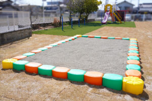A. 岡山県内で経山会が運営している「太陽保育園」「第二太陽保育園」のように、明るい太陽のような温かさを感じていただけるよう、外壁や看板には太陽をイメージしたクリーム色やイラストを取り入れています🌞