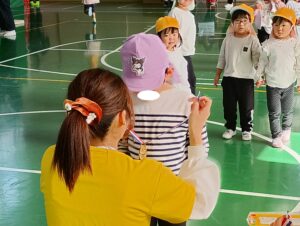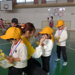 兄弟姉妹のお兄さんお姉さんも参加して玉入れを行ないました。