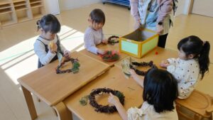 リースの土台は園の菜園で収穫したサツマイモのツル!