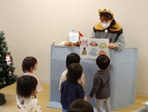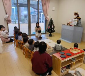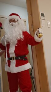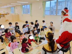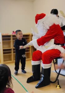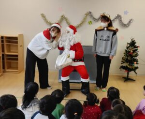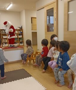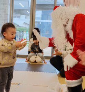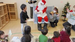 サンタクロースの登場に驚いたり、はしゃいだり😄