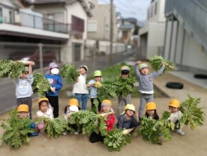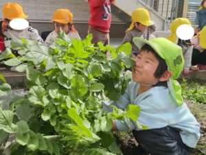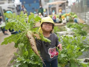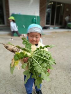 黒石太陽保育園では、先週、菜園の大根を収穫しました!