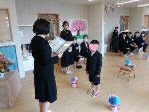 先日、黒石太陽保育園では、第1回卒園式を行ない、