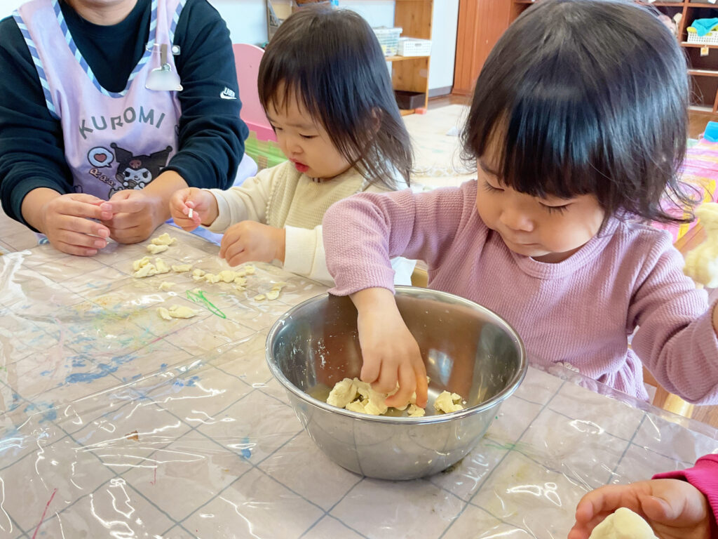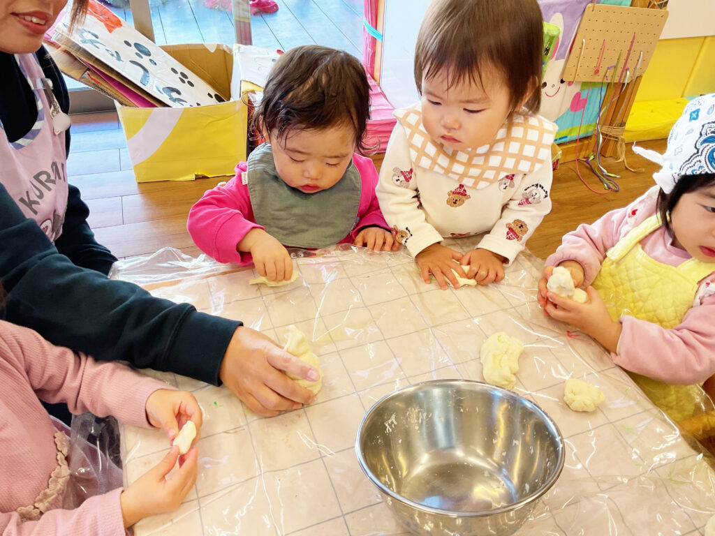 今回は、いちご組(1歳児クラス)の、小麦粉ねんど遊びの様子をお届けします🍓