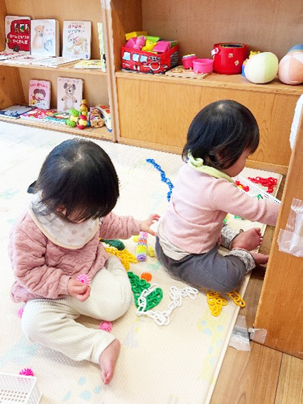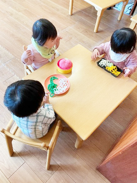 今回は、もも組さん(0歳児クラス)の2月の室内遊びの様子をお届けします🍑