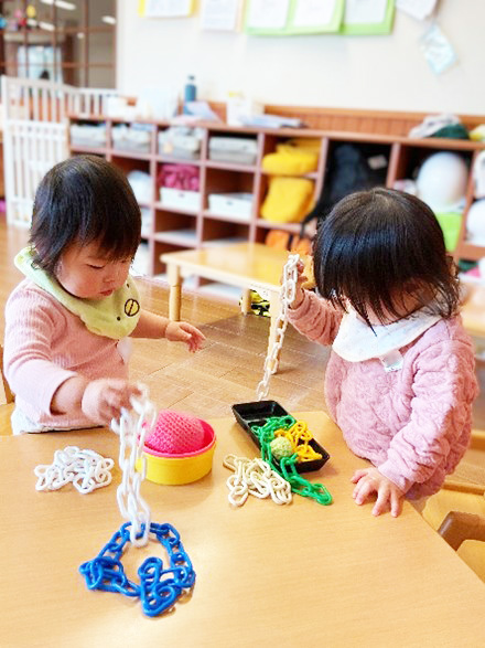 今回は、もも組(0歳児クラス)の室内遊びの様子をお届けしました