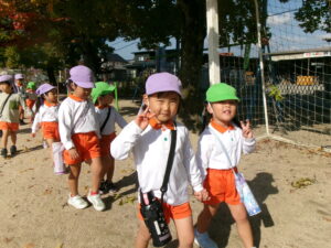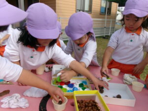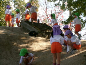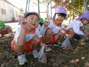東小学校へみかん組さんと一緒にドングリ拾いに行きました。