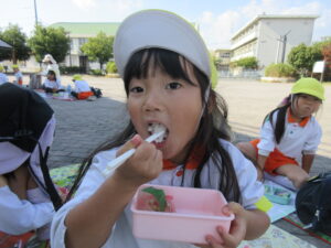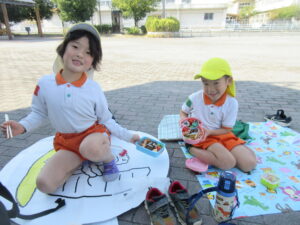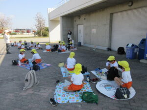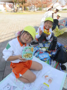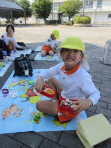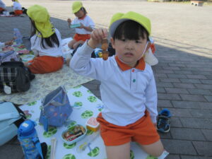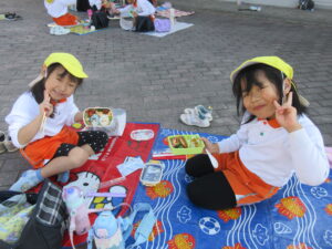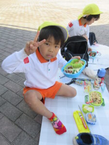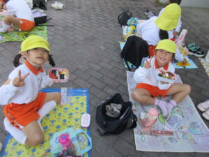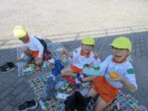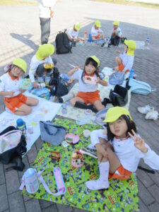 「いっしょにたべよう~!」とお友達と誘い合ってシートを敷いて、、、
