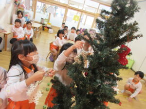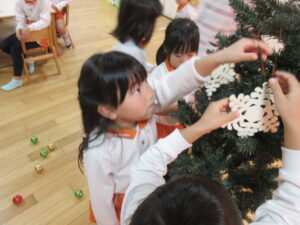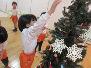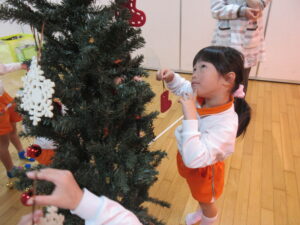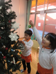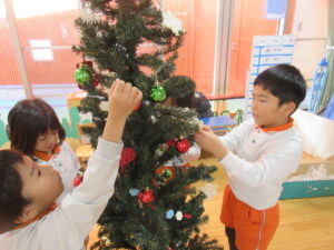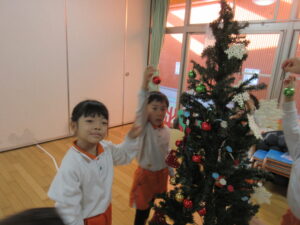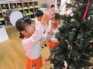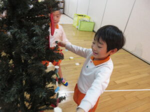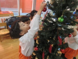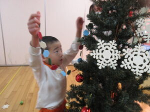 クリスマスに向けて、ツリーの飾りつけもみんなでしました!