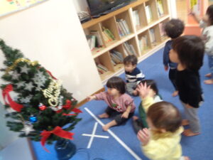 朝の会では、クリスマスの絵本を読んでもらったり、