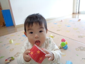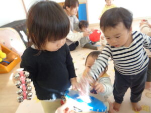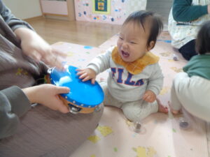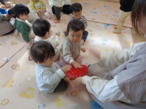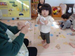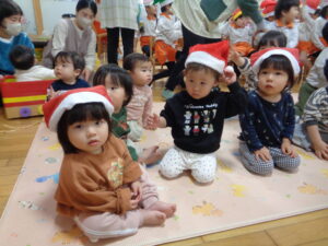 近くにサンタさんが来て、ちょっぴり緊張していたいちご組さん🍓