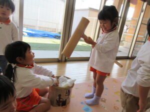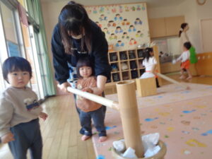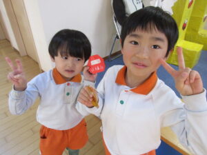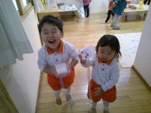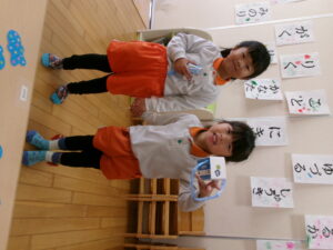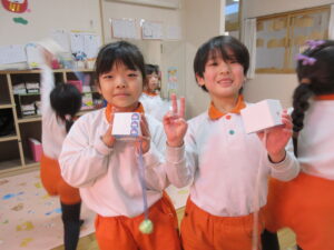 また、「神社」「福笑い」「かるた」「おみくじ」「こま」などのお正月遊びも楽しみました。