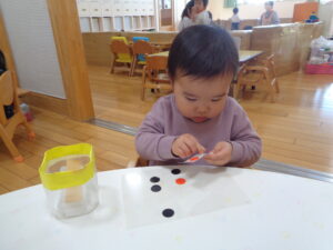小さいお友達も先生と指スタンプポンポンしたよ!