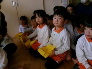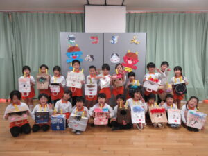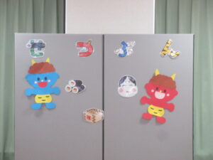 みんなで「おにはーそと!ふくはーうち!!」って言っておに退治したよ♪
