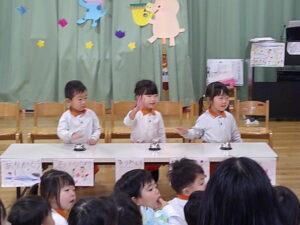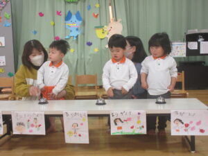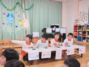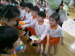 マスカット組さんからもみんなや先生達にプレゼントやお歌を歌ってくれました!
