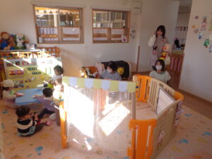 また、歩ける子どもはトイレに行ってみたり、1歳さんの机でかきかきしてみたり、