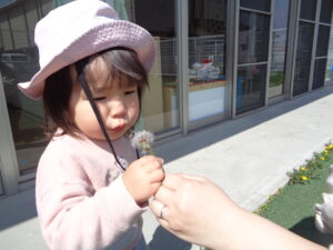 途中お花がいっぱいある所で「おはな!」「いっぱい!!」と言いながら近くで見たり、とってみたりしました。