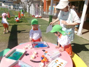 新入園児のお友達も少しずつ先生やお友達と仲良くなっています。