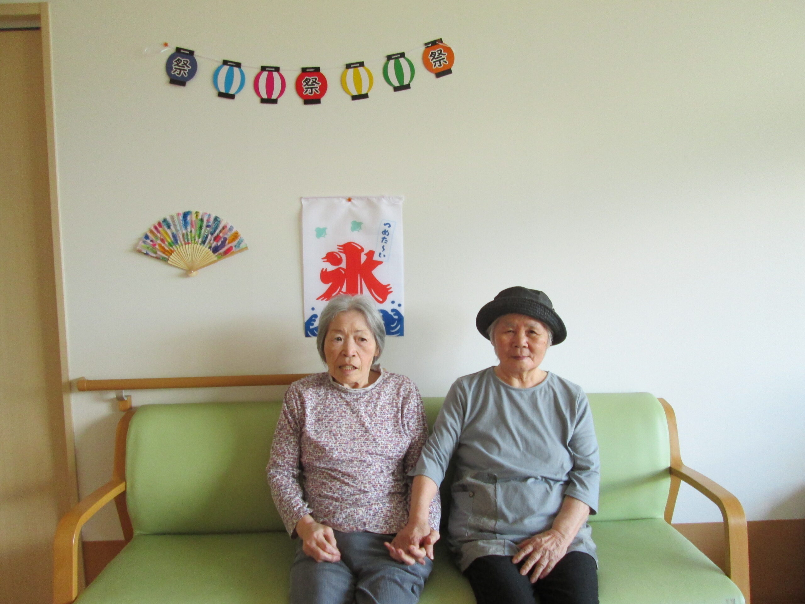 みんなで談話室のソファーで記念写真でしょうか😊☺ 😊☺