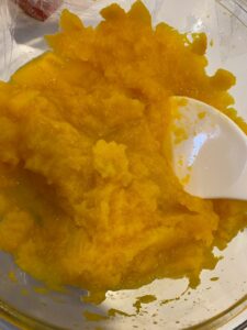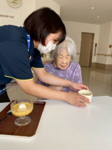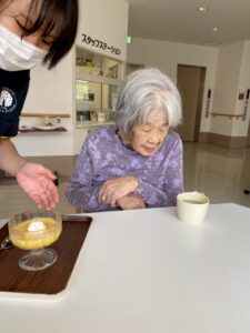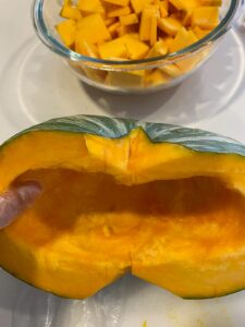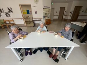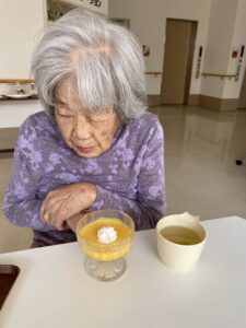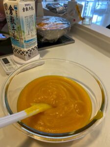 利用者さまのご家族からいただいたかぼちゃを使用して、かぼちゃプリンを作りました❕🎃