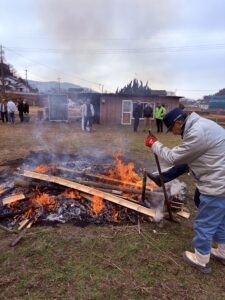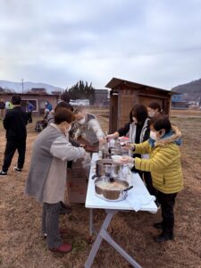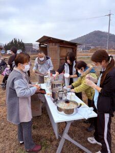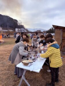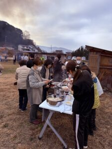 とんどの炎と豚汁で心も体もポカポカに