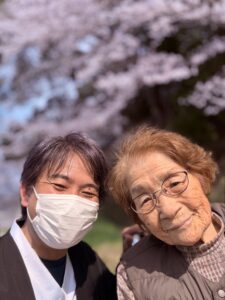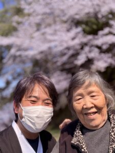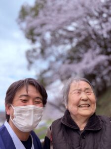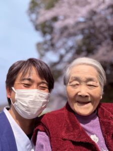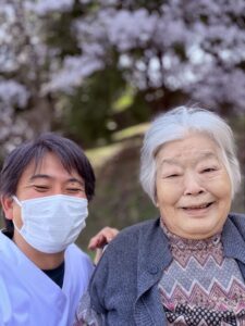 施設からすぐの八幡神社は桜の木が多いので、リハビリ後の花見を🌸🌸