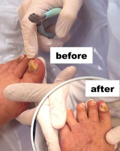爪甲鉤弯症と言われる厚く盛り上がった様な爪でしたが、