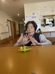 今日作成したのは、みなさんにもなじみの折り鶴。