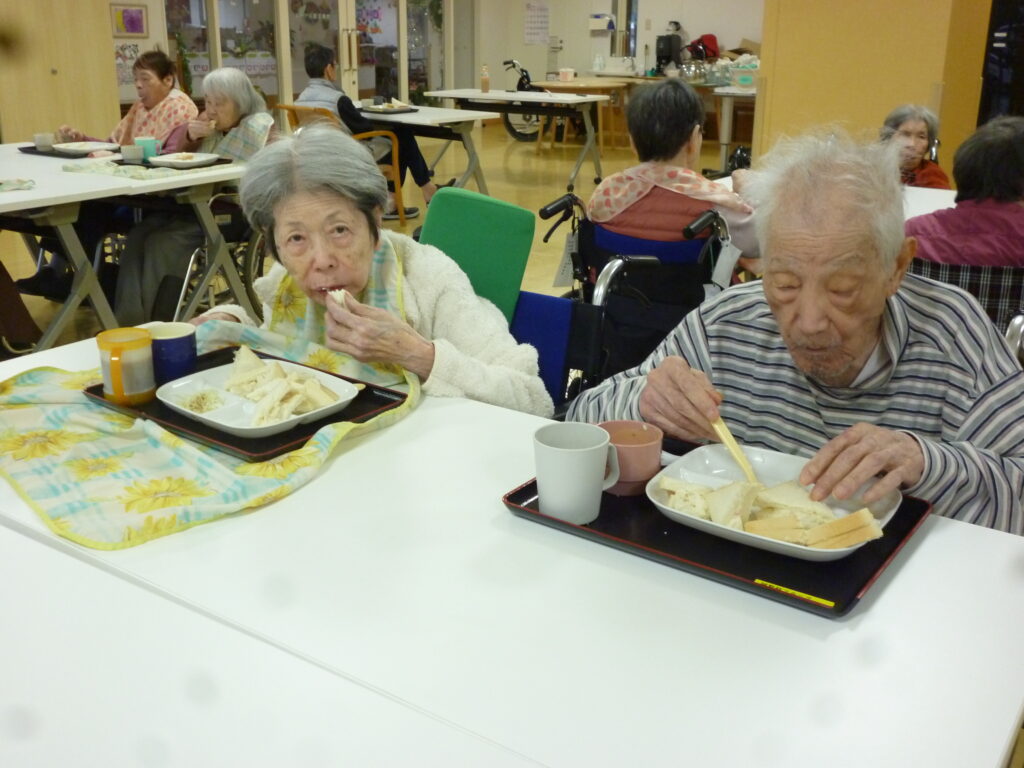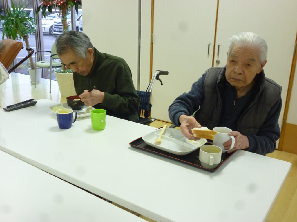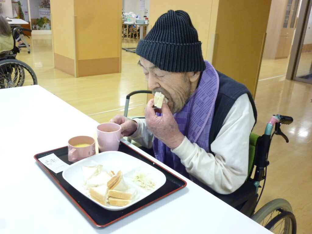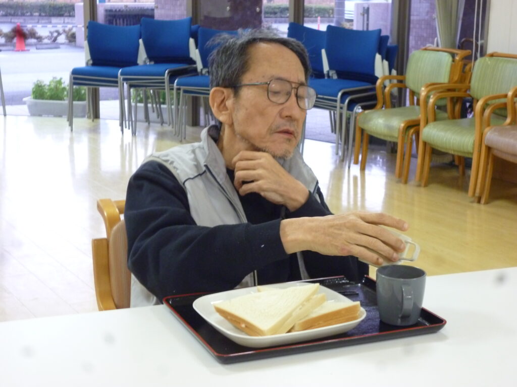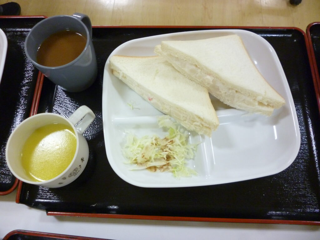 今朝も寒い中、出勤し、暖房を入れ、ポテトサラダをパンにはさみ、