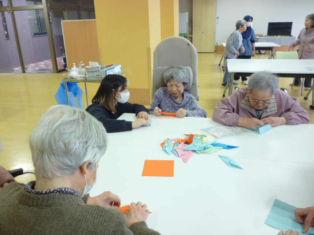そしてカフェの一角では、折り紙教室があり、来年の締め縄飾りを折り紙で作成されておりました!