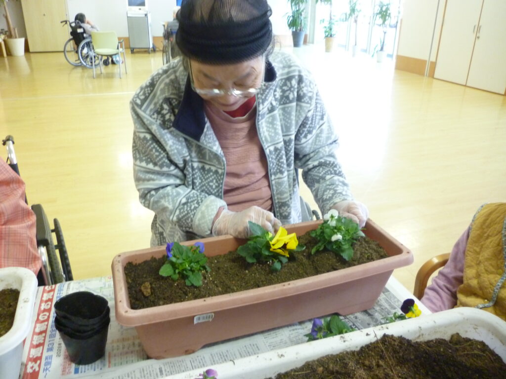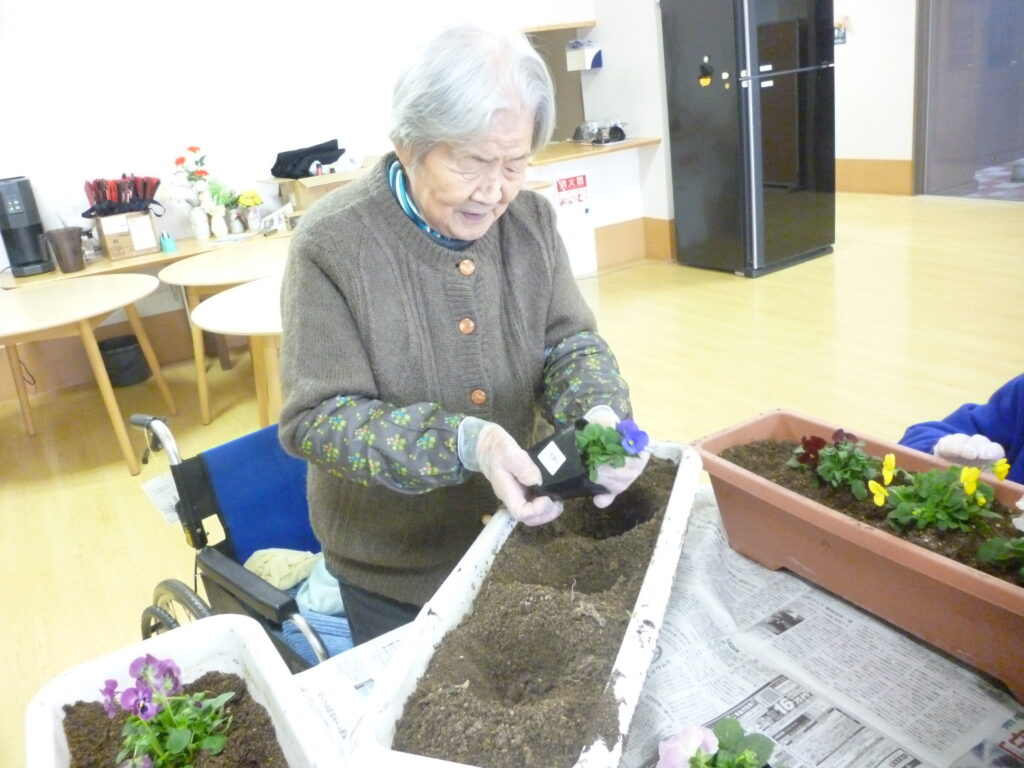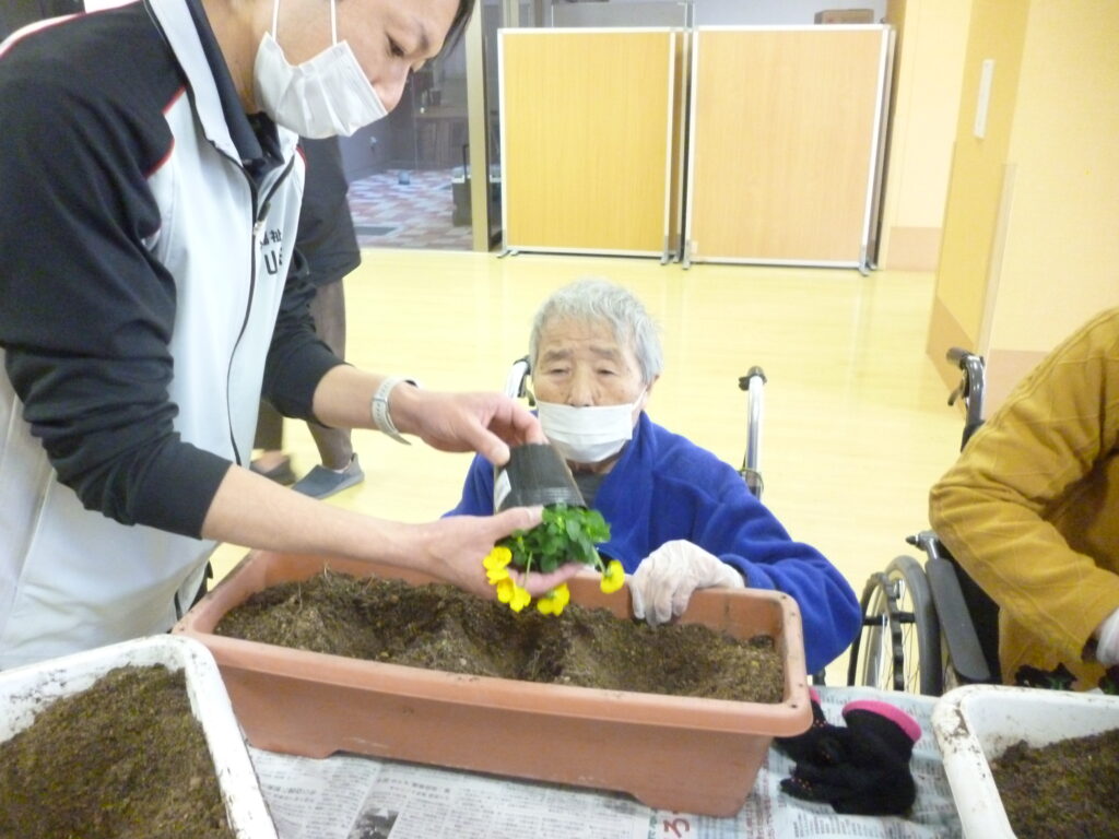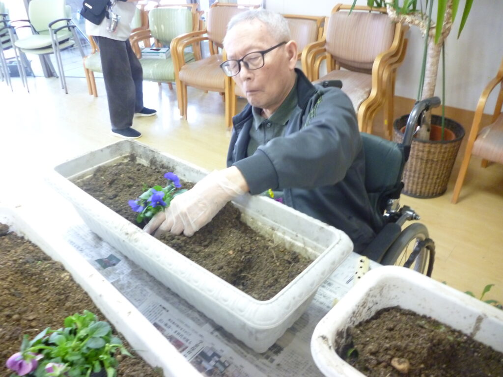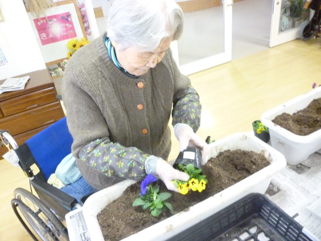 それを見ていた、利用者様が「こりゃ、いかん!いまにも寒さで枯れそうじゃ、早く植え替えにゃ~ならん!」