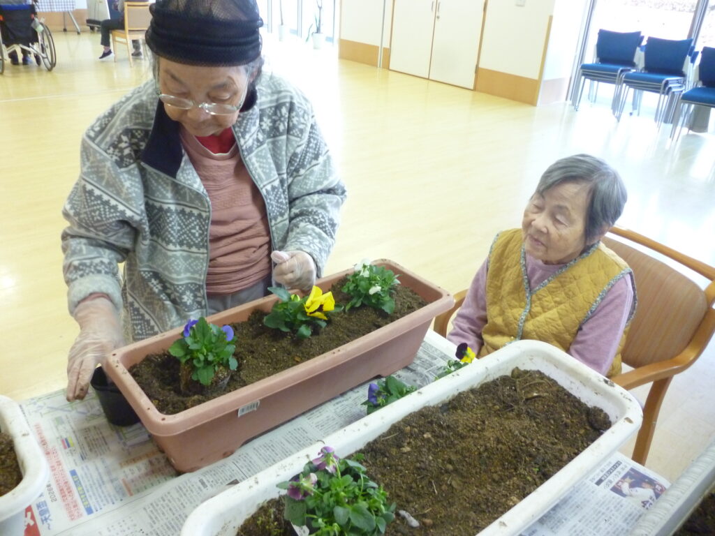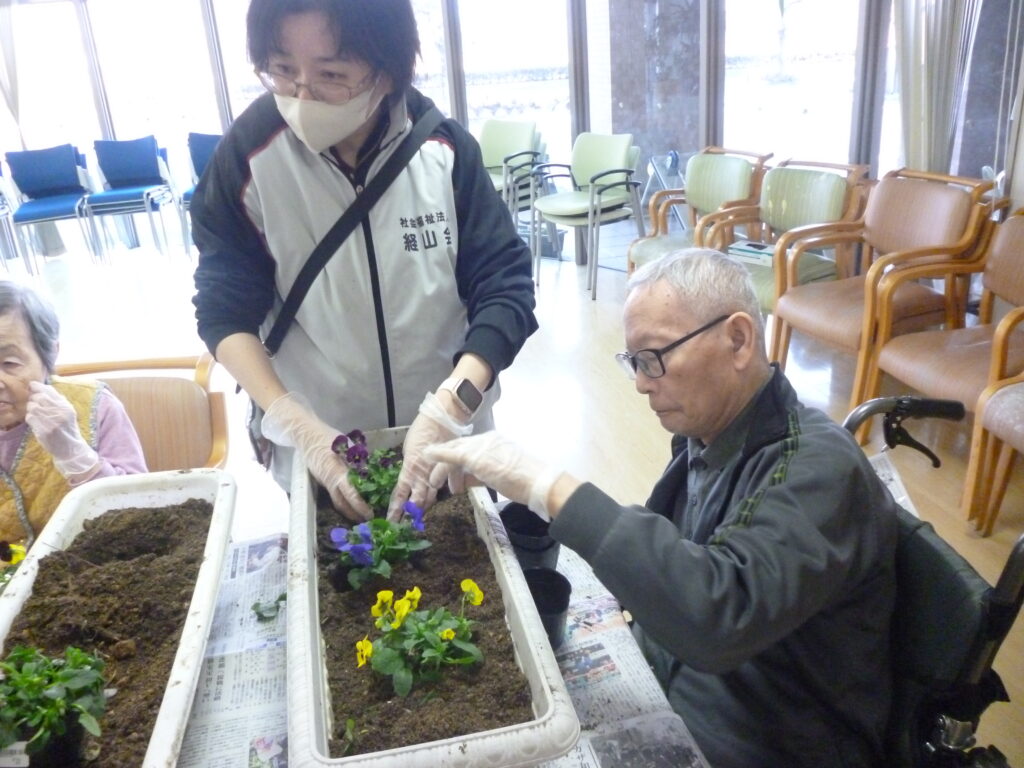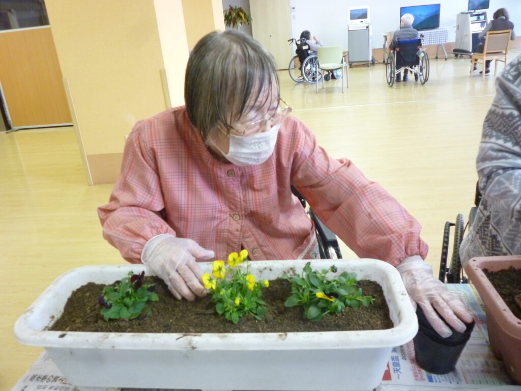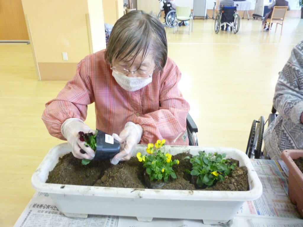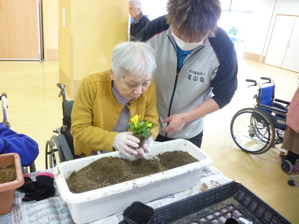 それを見ていた、利用者様が「こりゃ、いかん!いまにも寒さで枯れそうじゃ、早く植え替えにゃ~ならん!」