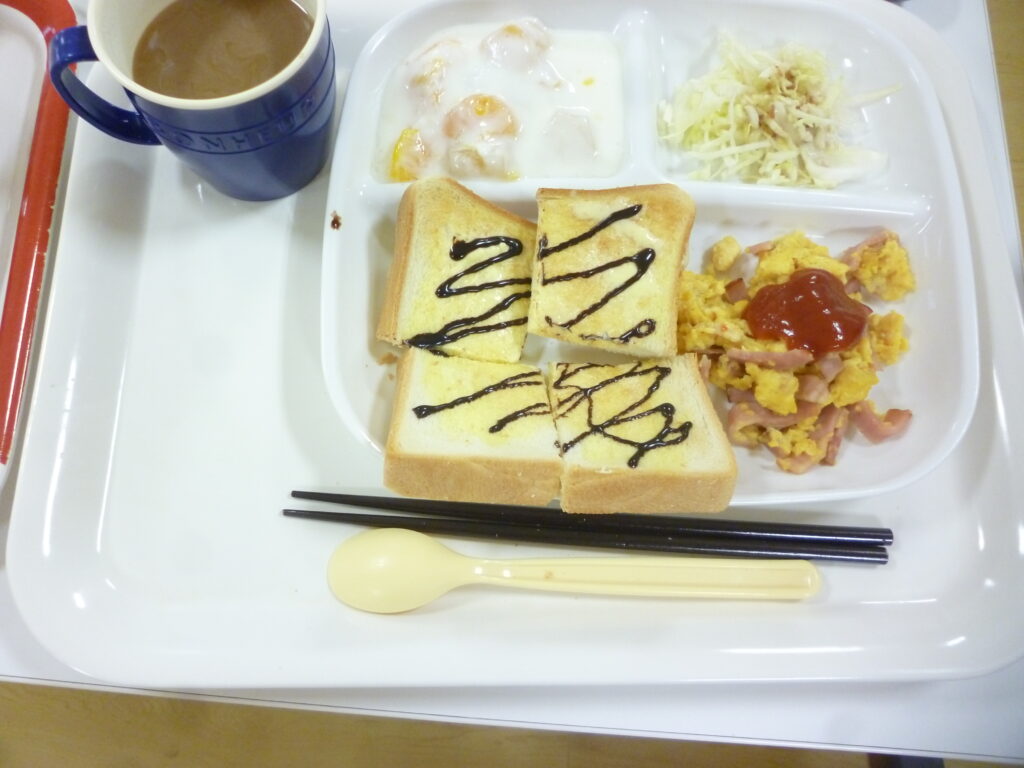 フルーツヨーグルト、サラダ、コーヒーを提供させていただきました。