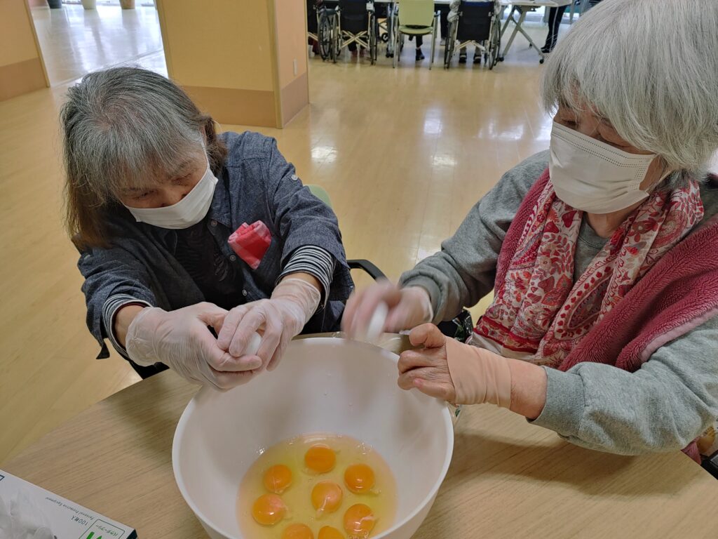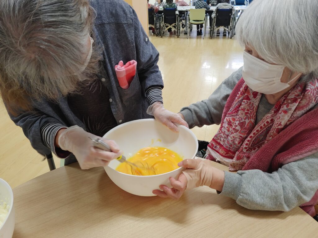 卵を割って混ぜて…